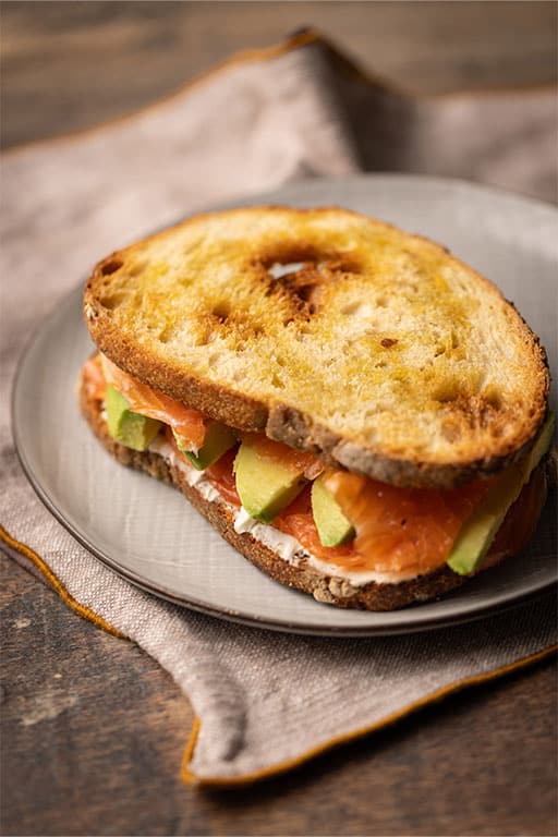 Sandwich préféré : du pain maison, un avocat bien mûr, du saumon fumé, du poivre et une bonne dose de citron : à la fraîche !